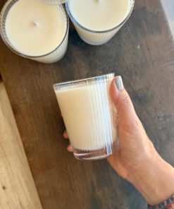 Vela natural® ecoblend vegetal formulada a base de aceites vegetales. Volcada a mano en envase vidrio (8 x 9,5 cm) reutilizable, con pabilo 100% algodón.