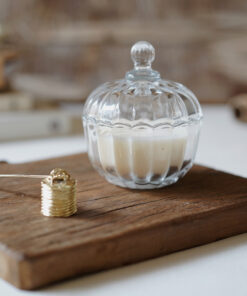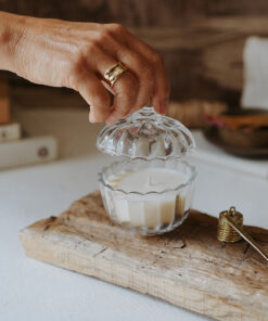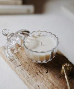 Vela natural® ecoblend vegetal formulada a base de aceites vegetales con fragancias de notas dulces y florales. Volcada a mano en bombonera de vidrio labrado con tapa (8.5x11cm) reutilizable, con pabilo 100% algodón.