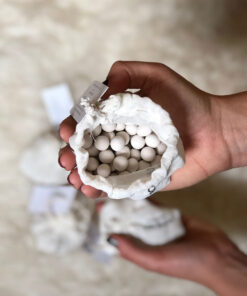¡Hay muchas formas de perfumar nuestros espacios y amamos estas perlitas! Están hechas por artesanos de la comunidad Qom con mucha paciencia y dedicación, ellos se reúnen en familia y entre charlas van armando una a una. Nosotros las perfumamos y después las embolsamos en tela de gasa de algodón.