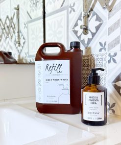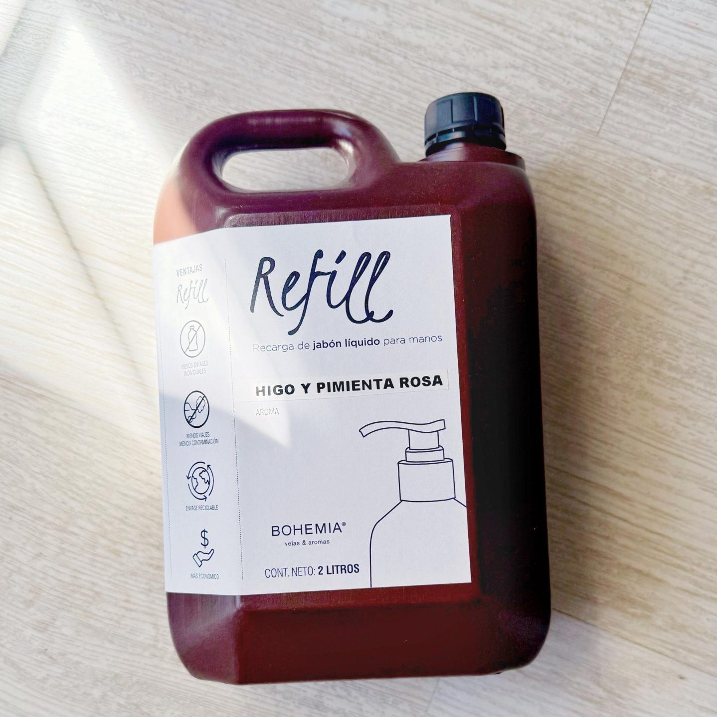 – Bidon de plastico color marron . Envase reusable y recargable.